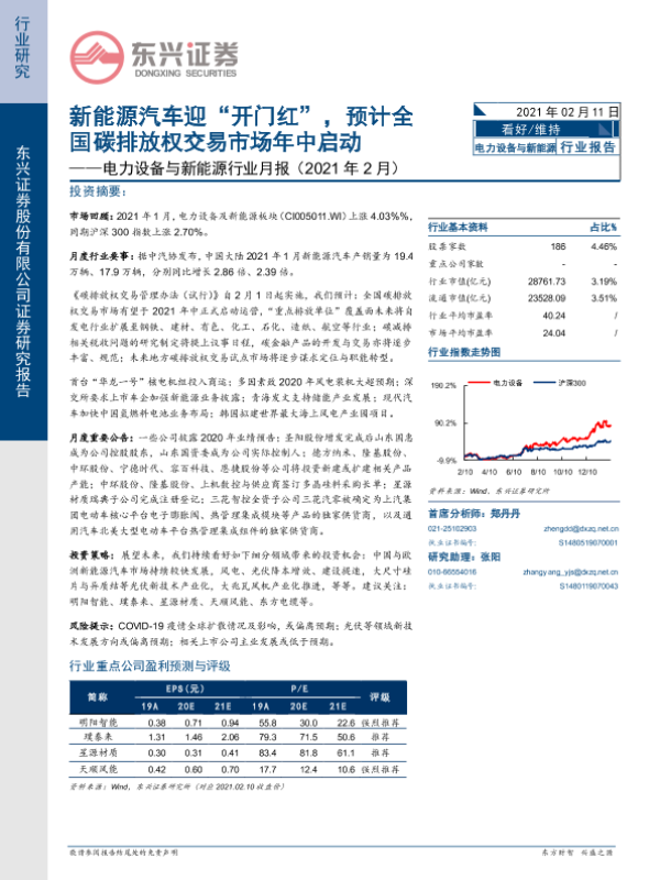 【东兴证券】【20210211】电力设备与新能源行业月报(2021年2月):新能源汽车迎“开门红”,预计全国碳排放权交易市场年中启动-18页