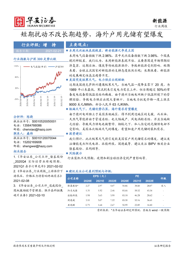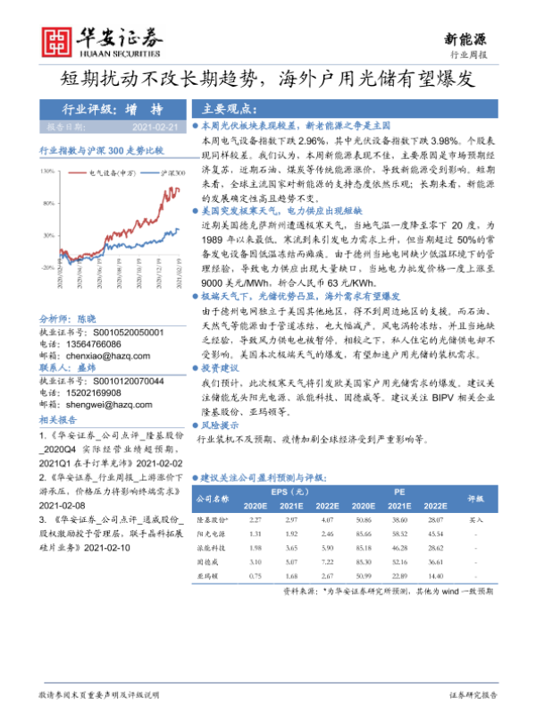 【华安证券】【20210221】20210221-华安证券-新能源行业周报:短期扰动不改长期趋势,海外户用光储有望爆发-15页