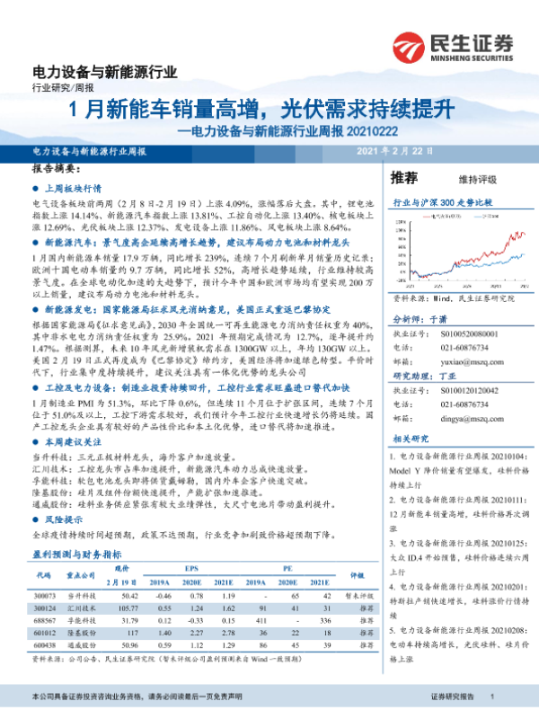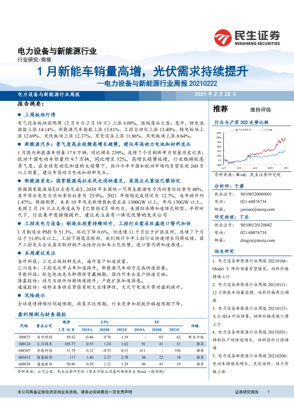 【民生证券】【20210222】电力设备与新能源行业周报:1月新能车销量高增,光伏需求持续提升-17页