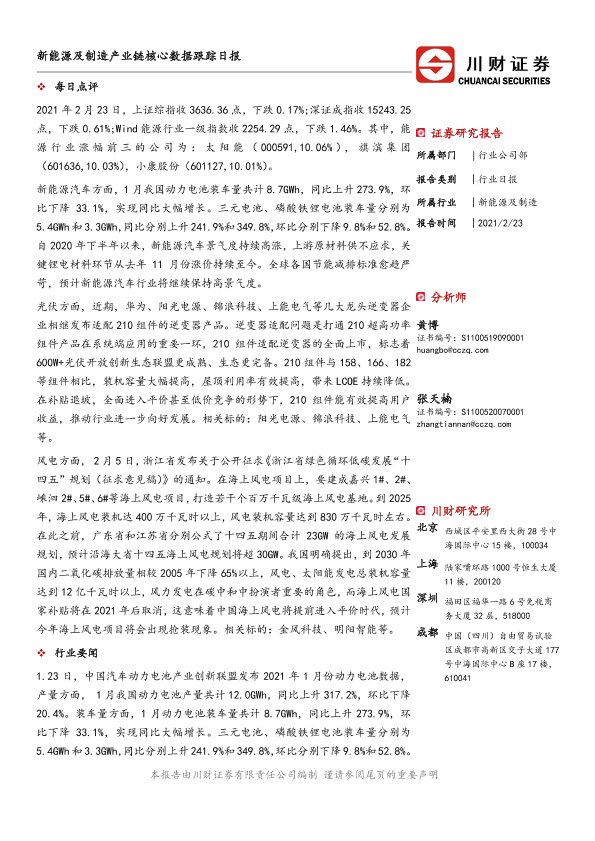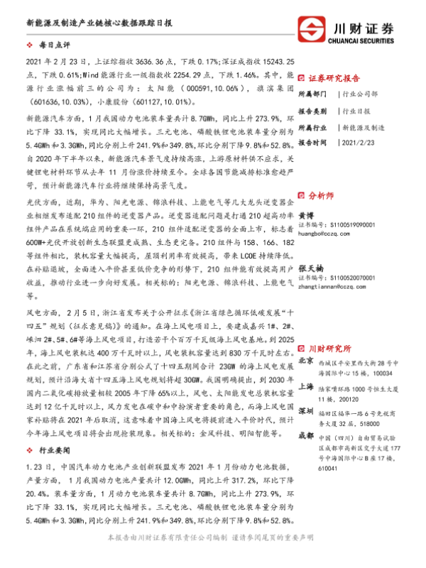 【川财证券】【20210223】新能源及制造产业链核心数据跟踪日报-4页