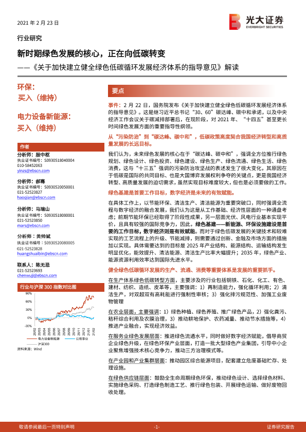 【光大证券】【20210223】关于加快建立健全绿色低碳循环发展经济体系的指导意见解读:新时期绿色发展的核心,正在向低碳转变-3页
