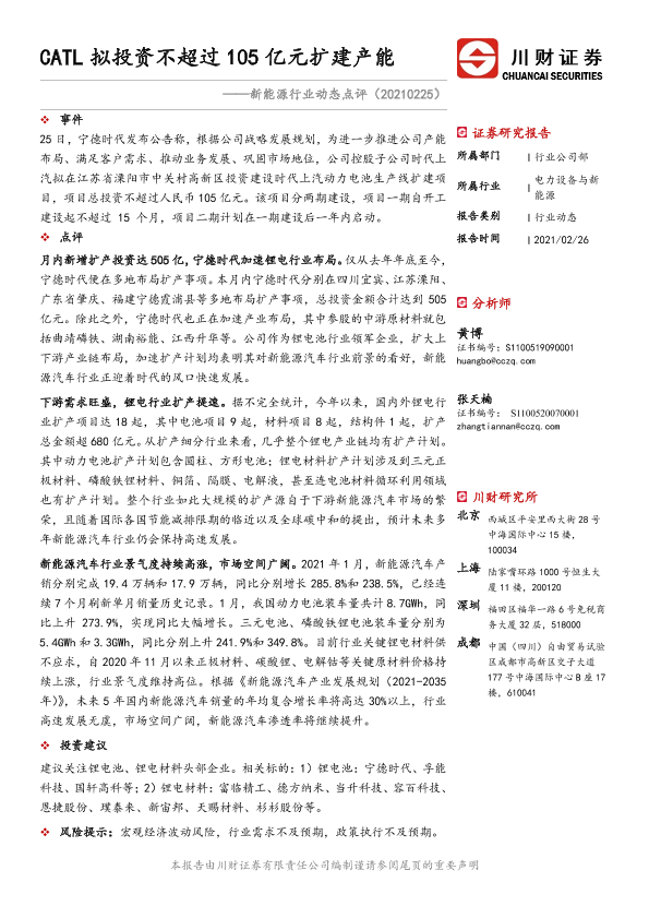 【川财证券】【20210226】CATL拟投资不超过105亿元扩建产能-2页