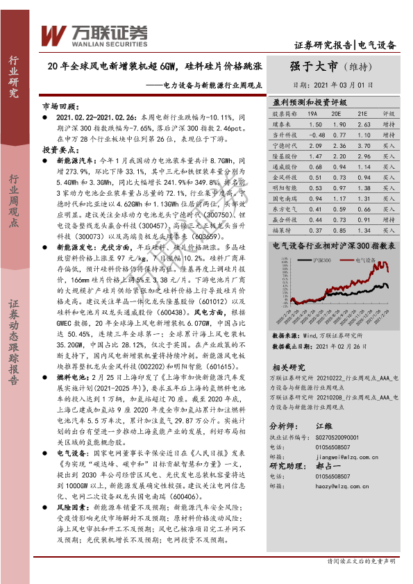 【万联证券】【20210301】20210301-万联证券-电力设备与新能源行业周观点:20年全球风电新增装机超6GW,硅料硅片价格跳涨-11页