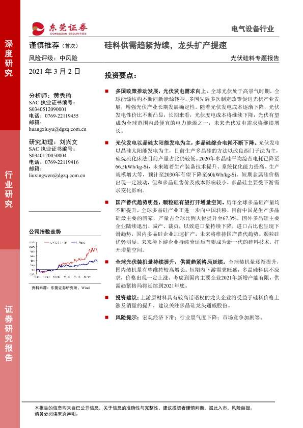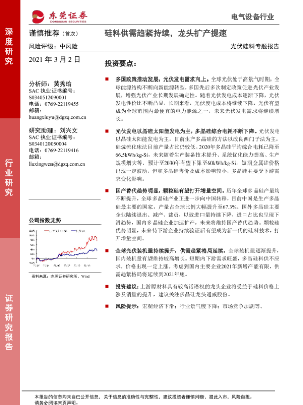 【东莞证券】【20210302】光伏硅料专题报告:硅料供需趋紧持续,龙头扩产提速-28页