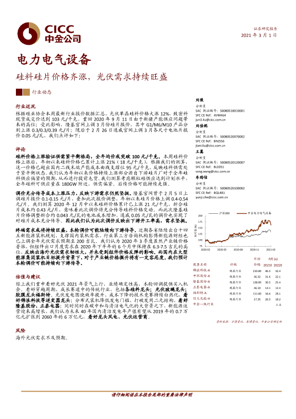 【中金公司】【20210301】电力电气设备行业:硅料硅片价格齐涨,光伏需求持续旺盛-7页