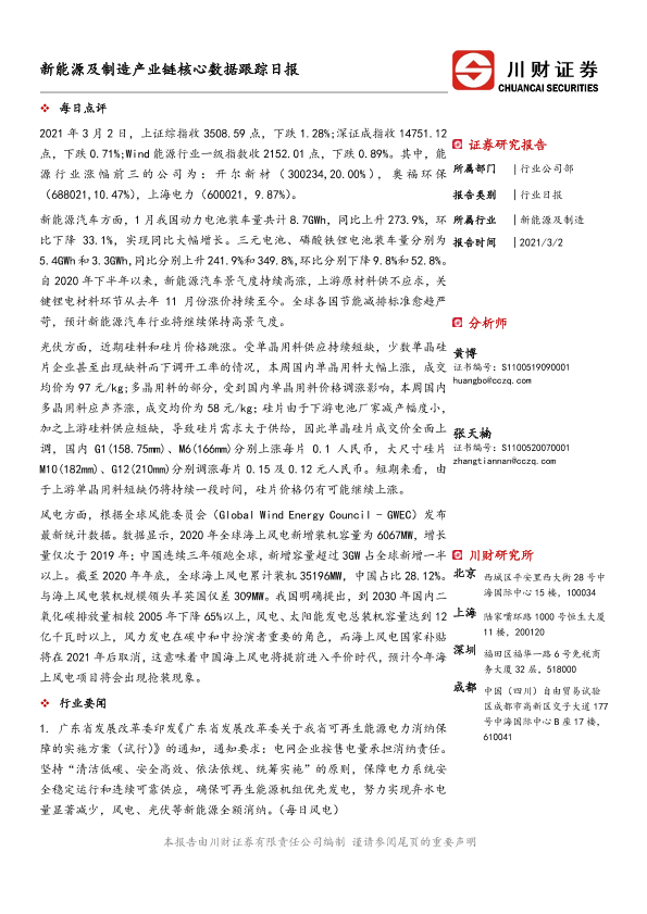 【川财证券】【20210302】新能源及制造产业链核心数据跟踪日报-4页
