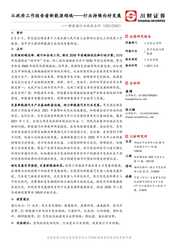 【川财证券】【20210305】从政府工作报告看新能源领域——行业持续向好发展-2页