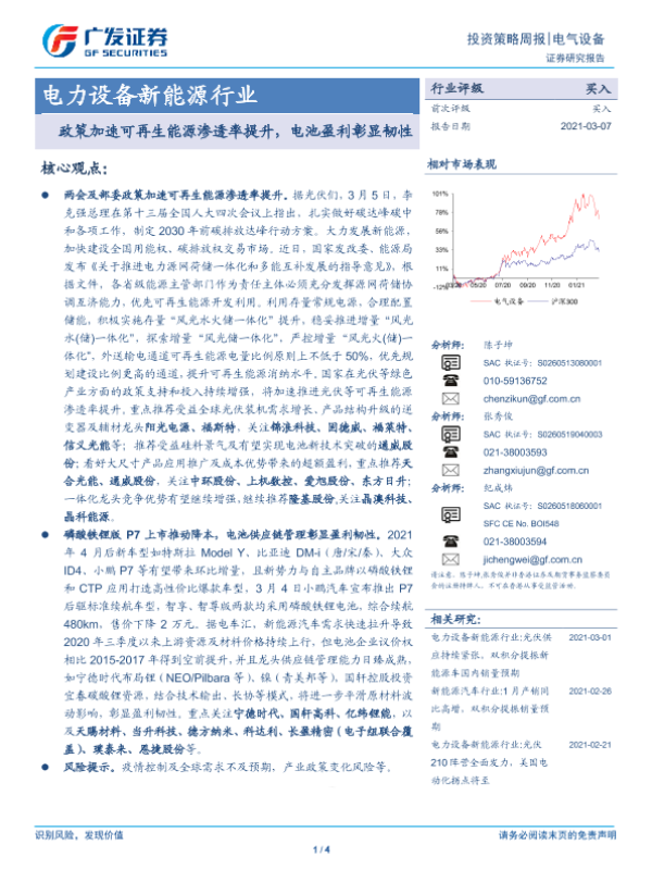 【广发证券】【20210307】电力设备新能源行业投资策略周报:政策加速可再生能源渗透率提升,电池盈利彰显韧性-4页
