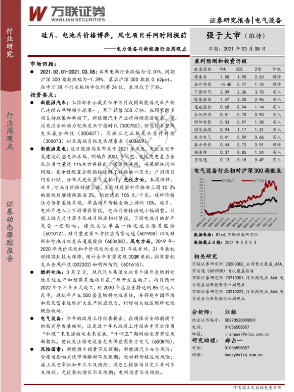 【万联证券】【20210308】电力设备与新能源行业周观点:硅片、电池片价格博弈,风电项目并网时间提前-11页