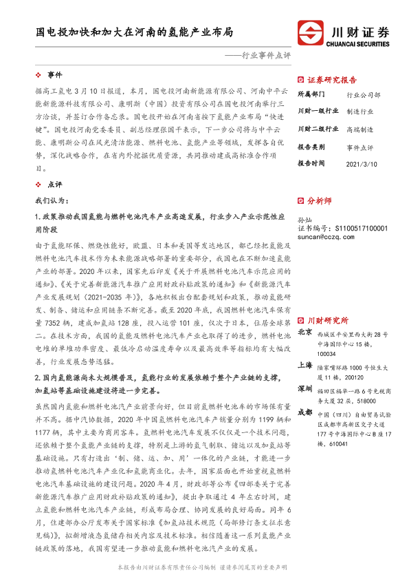 【川财证券】【20210310】新能源行业事件点评:国电投加快和加大在河南的氢能产业布局-3页