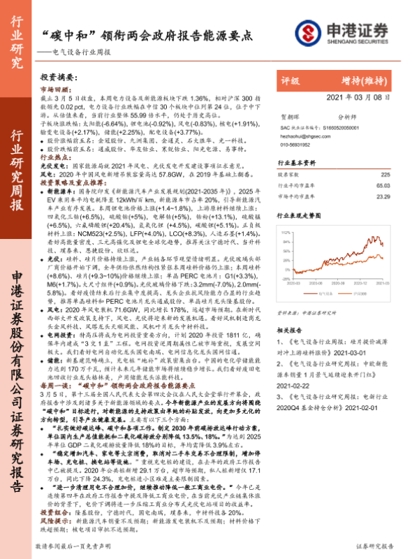 【申港证券】【20210308】“碳中和”领衔两会政府报告能源要点——电气设备行业周报-37页