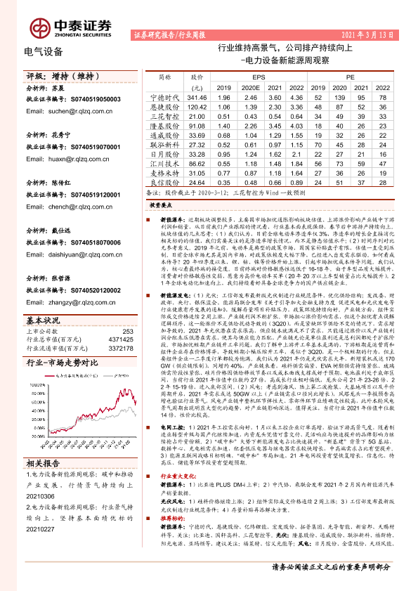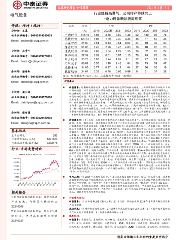 【中泰证券】【20210313】电力设备新能源周观察:行业维持高景气,公司排产持续向上-18页