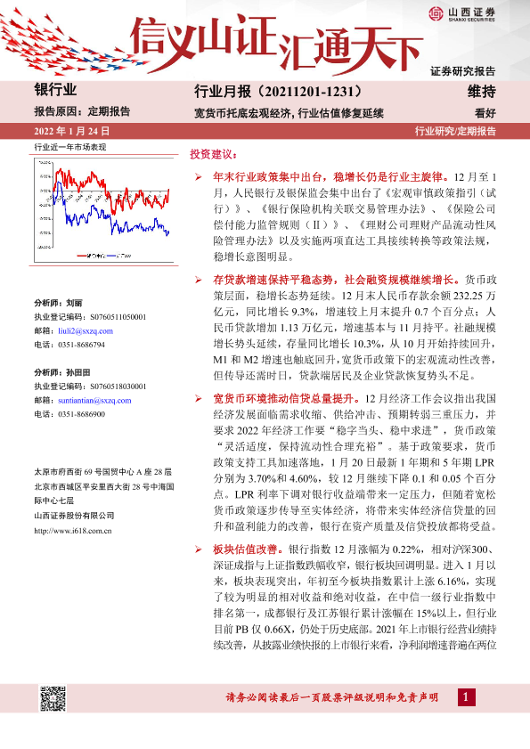 【山西证券】【20220124】银行业月报:宽货币托底宏观经济,行业估值修复延续-15页