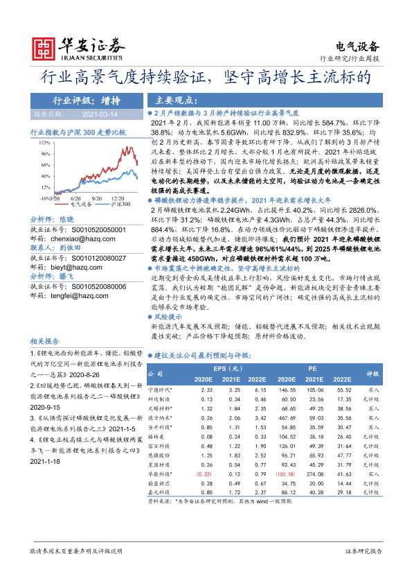 【华安证券】【20210314】电气设备行业周报:行业高景气度持续验证,坚守高增长主流标的-14页
