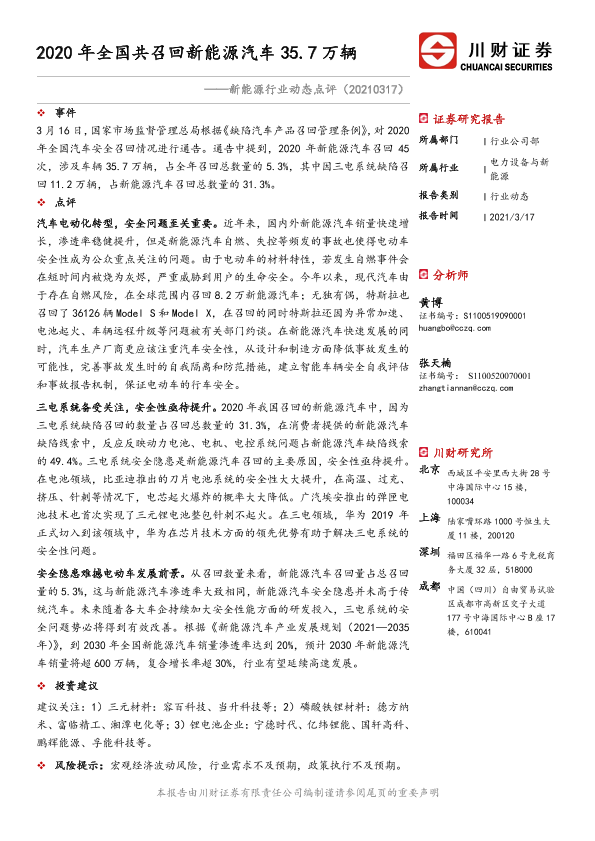 【川财证券】【20210317】2020年全国共召回新能源汽车35.7万辆-2页