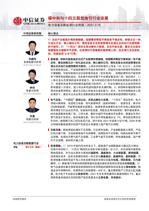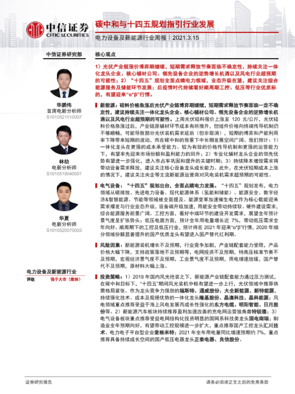 【中信证券】【20210315】电力设备及新能源行业周报:碳中和与十四五规划指引行业发展-13页