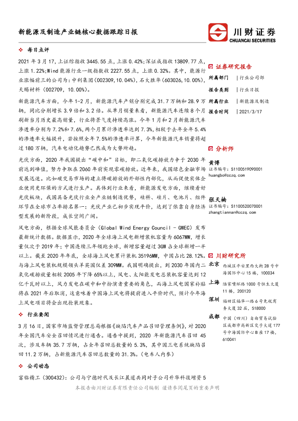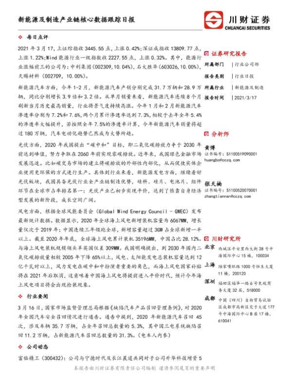 【川财证券】【20210317】新能源及制造产业链核心数据跟踪日报-4页