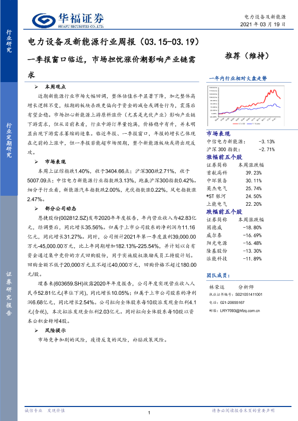 【华福证券】【20210319】电力设备及新能源行业周报:一季报窗口临近,市场担忧涨价潮影响产业链需求-6页