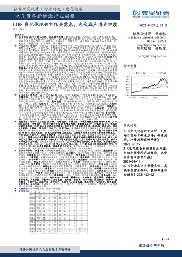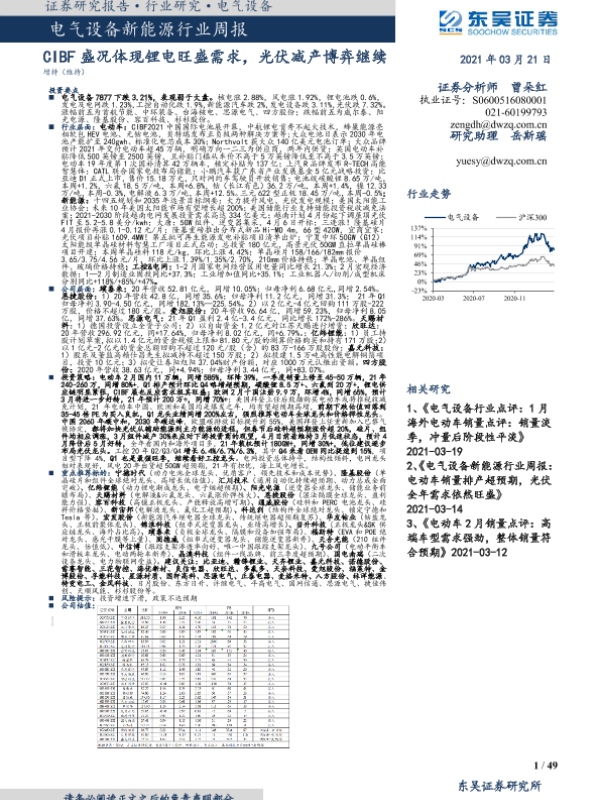 【东吴证券】【20210321】电气设备新能源行业周报:CIBF盛况体现锂电旺盛需求,光伏减产博弈继续-49页