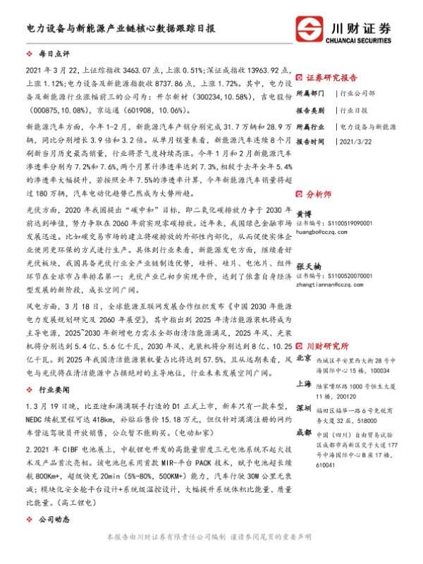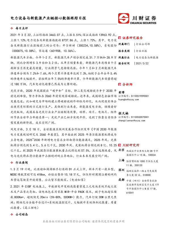 【川财证券】【20210322】电力设备与新能源产业链核心数据跟踪日报-4页