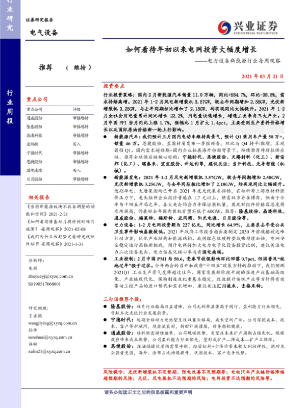 【兴业证券】【20210321】如何看待年初以来电网投资大幅度增长——电力设备新能源行业每周观察-29页