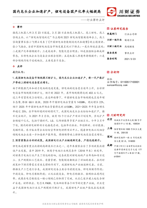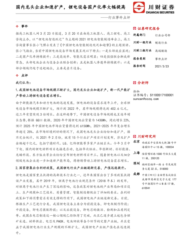 【川财证券】【20210323】国内龙头企业加速扩产,锂电设备国产化率大幅提高-3页