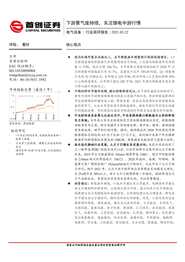 【首创证券】【20210322】20210322-首创证券-电气设备行业简评报告:下游景气度持续,关注锂电中游行情-20页