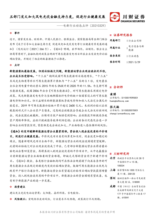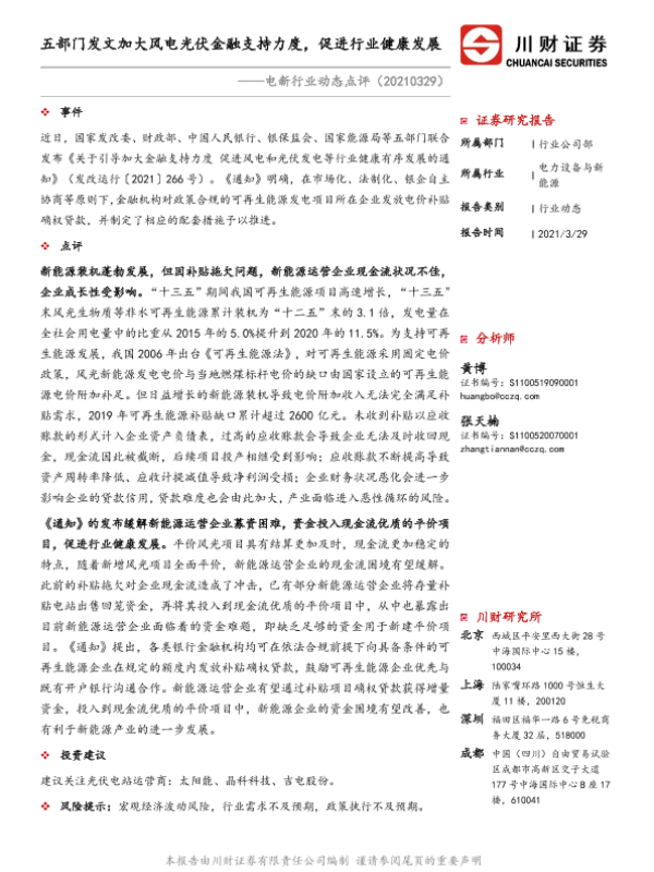 【川财证券】【20210329】电新行业动态点评:五部门发文加大风电光伏金融支持力度,促进行业健康发展-2页
