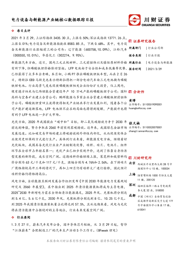 【川财证券】【20210329】电力设备与新能源产业链核心数据跟踪日报-4页