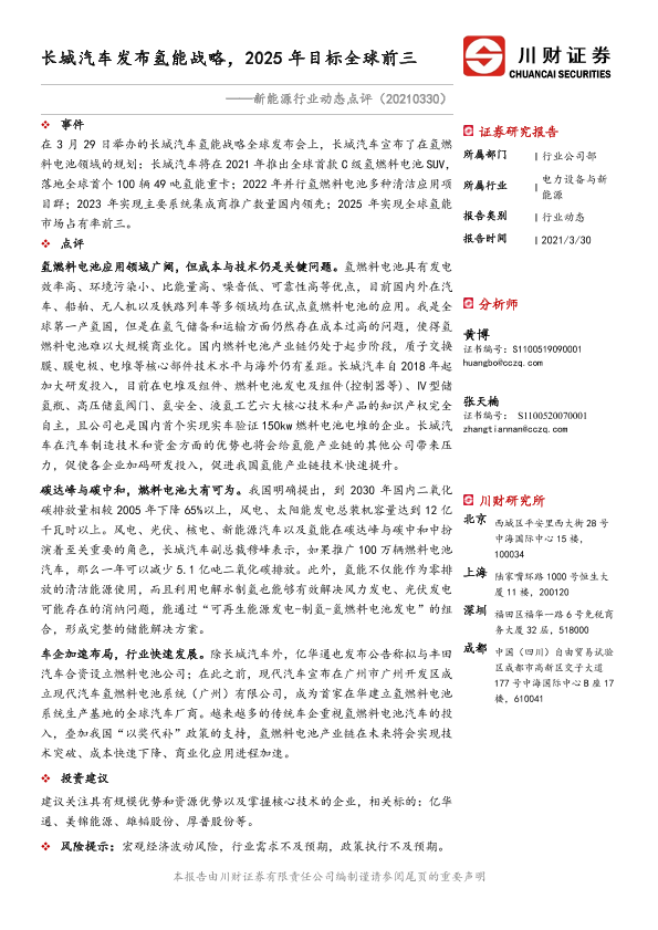 【川财证券】【20210330】长城汽车发布氢能战略,2025年目标全球前三-2页