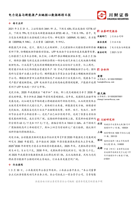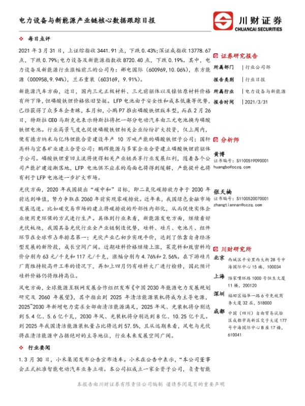 【川财证券】【20210331】电力设备与新能源产业链核心数据跟踪日报-5页