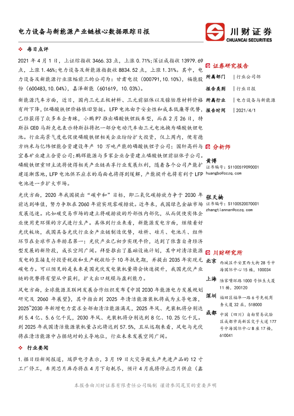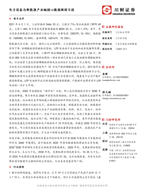 【川财证券】【20210401】电力设备与新能源产业链核心数据跟踪日报-4页