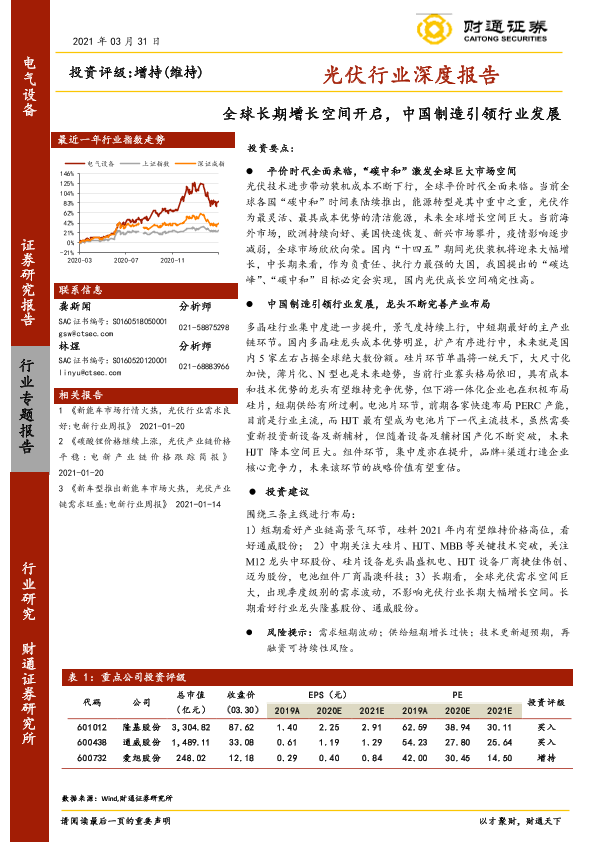 【财通证券】【20210331】光伏行业深度报告:全球长期增长空间开启,中国制造引领行业发展-28页