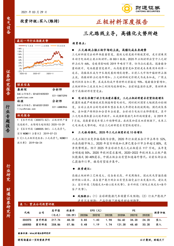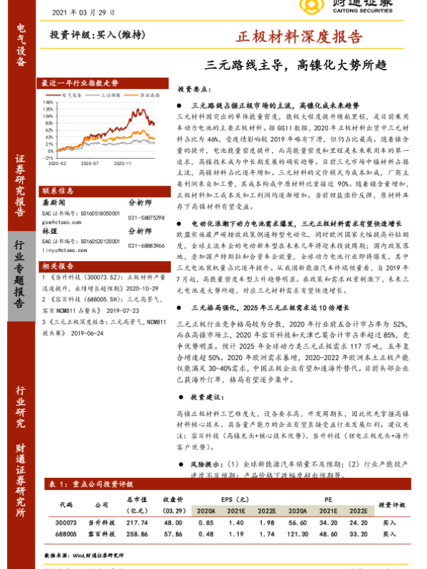 【财通证券】【20210329】正极材料深度报告:三元路线主导,高镍化大势所趋-30页