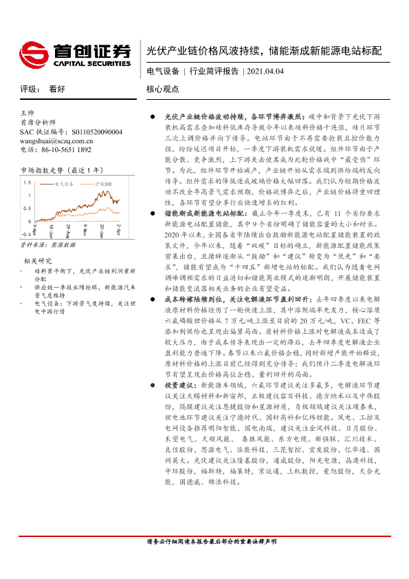 【首创证券】【20210404】光伏产业链价格风波持续,储能渐成新能源电站标配-17页