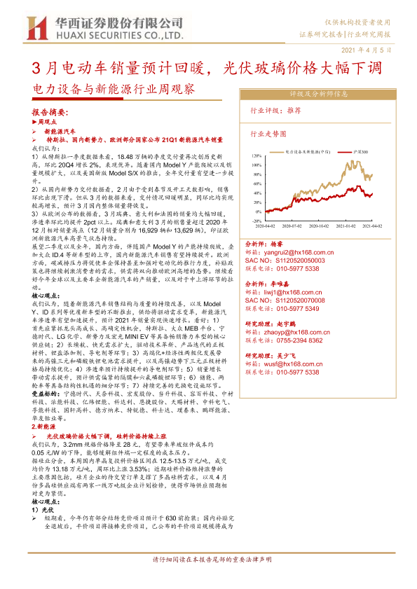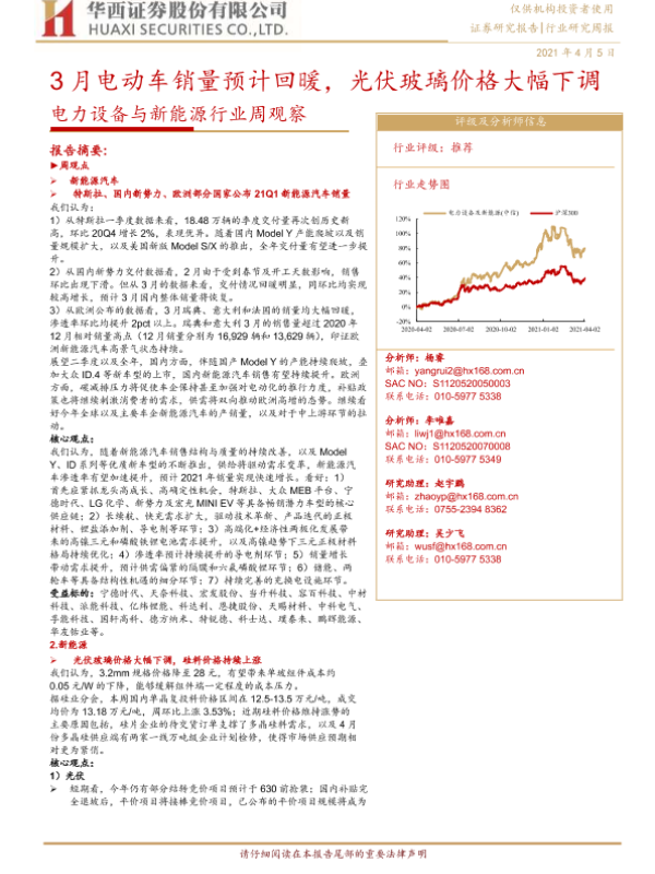 【华西证券】【20210405】电力设备与新能源行业周观察:3月电动车销量预计回暖,光伏玻璃价格大幅下调-17页