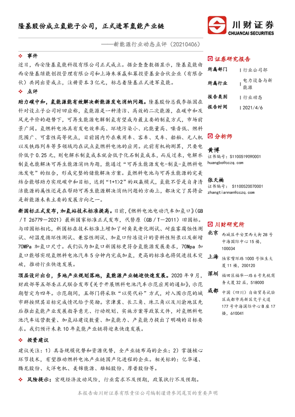 【川财证券】【20210406】新能源行业动态点评:隆基股份成立氢能子公司,正式进军氢能产业链-2页