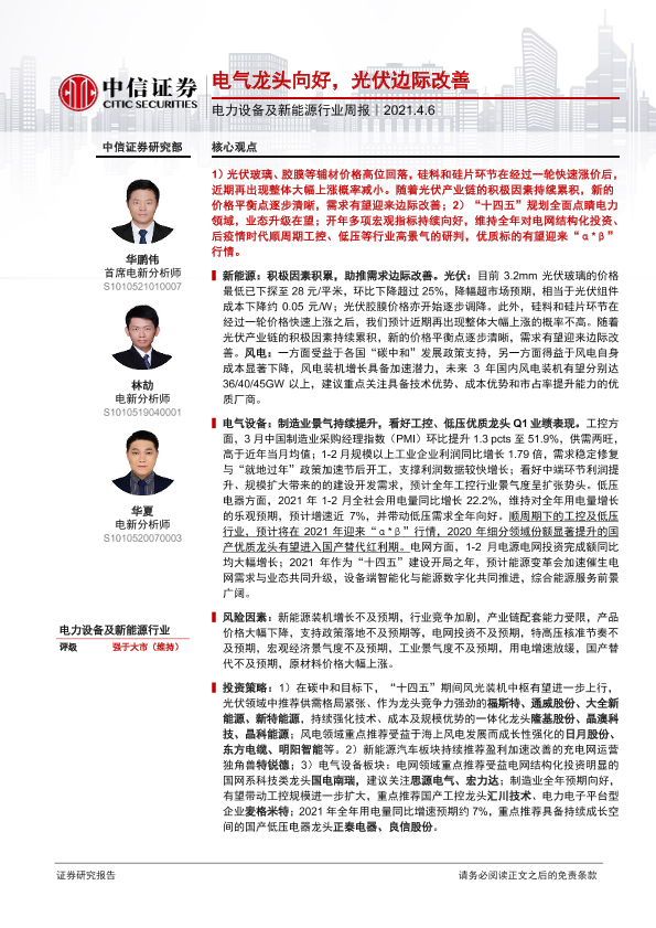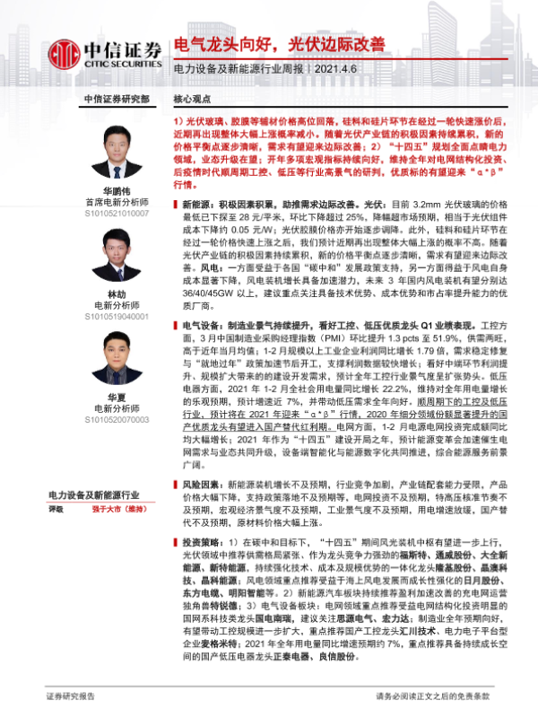 【中信证券】【20210406】电力设备及新能源行业周报:电气龙头向好,光伏边际改善-19页