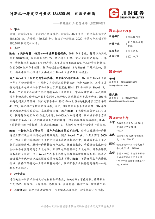 【川财证券】【20210407】新能源行业动态点评:特斯拉一季度交付量达184800辆,创历史新高-2页