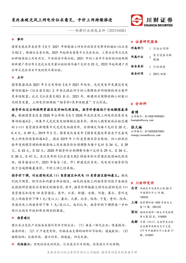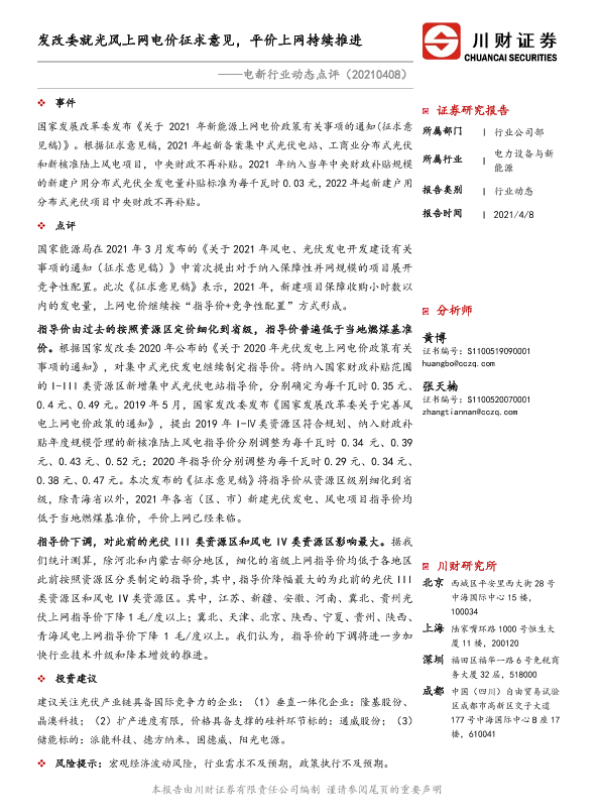 【川财证券】【20210408】电新行业动态点评:发改委就光风上网电价征求意见,平价上网持续推进-2页
