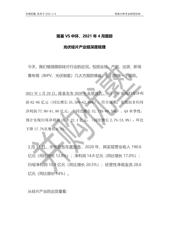 【并购优塾】【20210408】隆基VS中环:2021年4月跟踪光伏硅片产业链深度梳理-23页