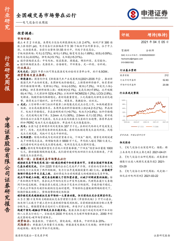 【申港证券】【20210405】全国碳交易市场势在必行——电气设备行业周报-41页