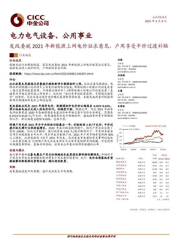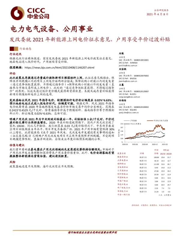 【中金公司】【20210408】发改委就2021年新能源上网电价征求意见,户用享受平价过渡补贴-9页