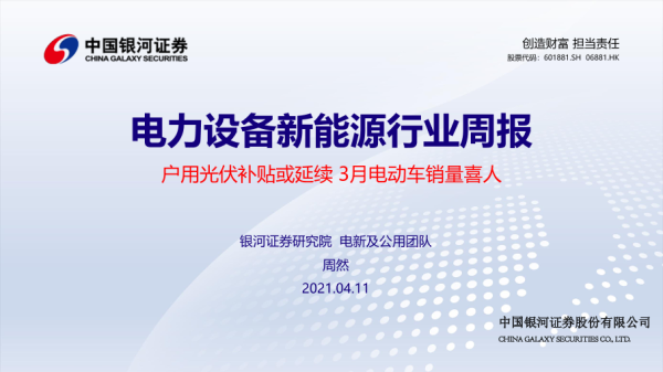 【银河证券】【20210411】电力设备新能源行业周报:户用光伏补贴或延续 3月电动车销量喜人-40页