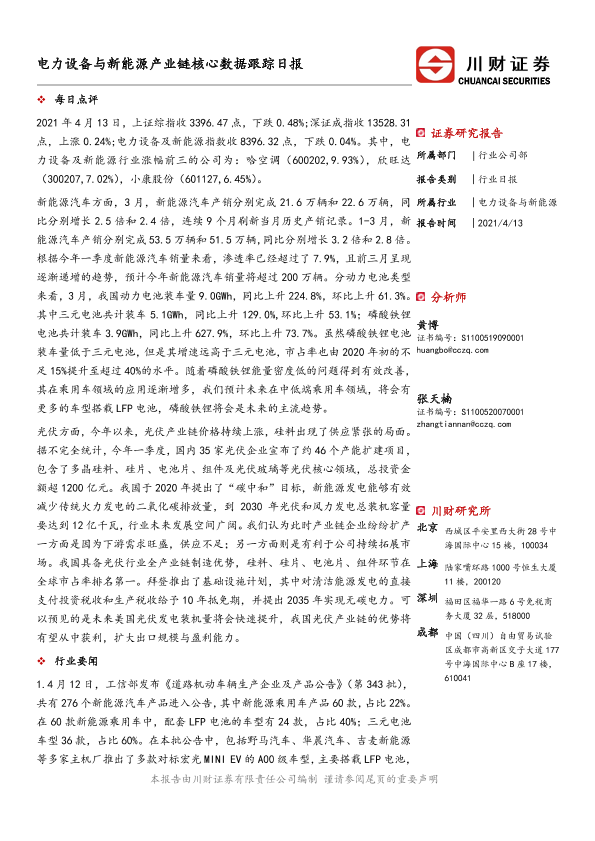 【川财证券】【20210413】电力设备与新能源产业链核心数据跟踪日报-5页