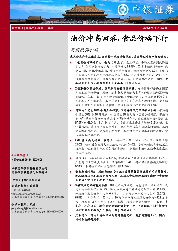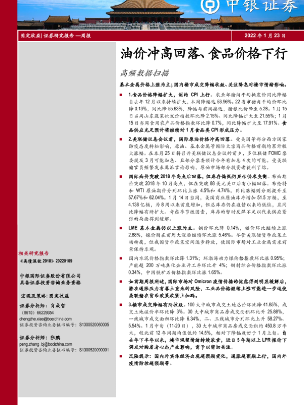 【中银证券】【20220123】高频数据扫描:油价冲高回落、食品价格下行-18页