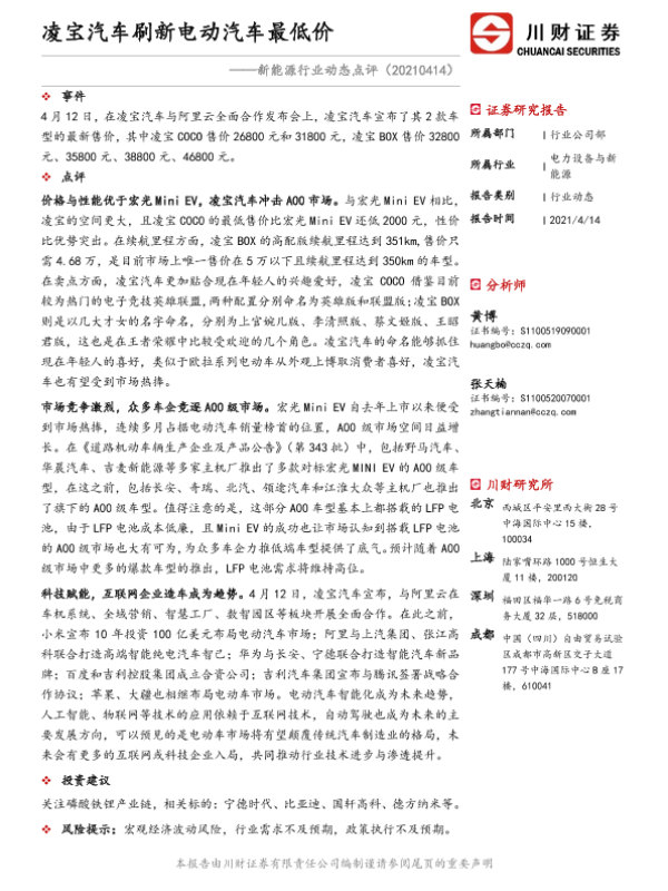 【川财证券】【20210414】新能源行业动态点评:凌宝汽车刷新电动汽车最低价-2页