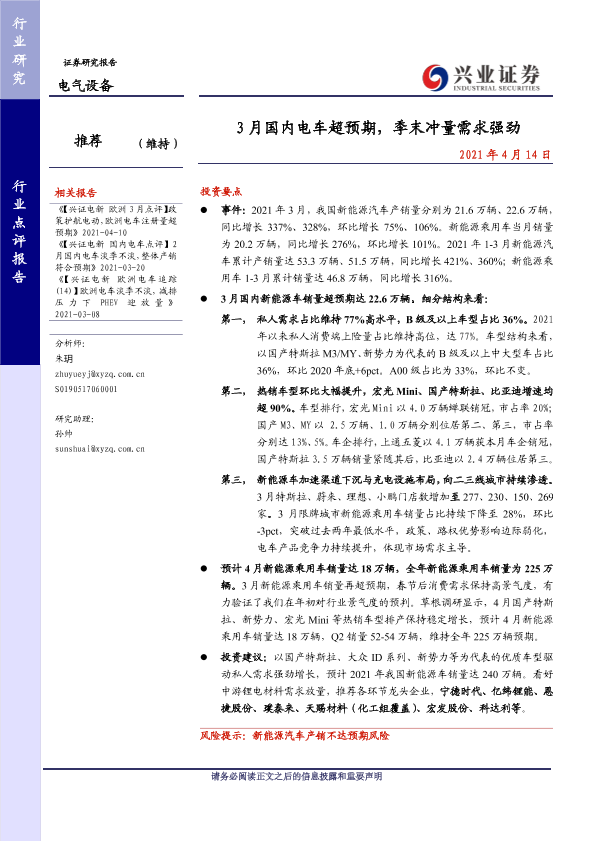 【兴业证券】【20210414】3月国内电车超预期,季末冲量需求强劲-10页