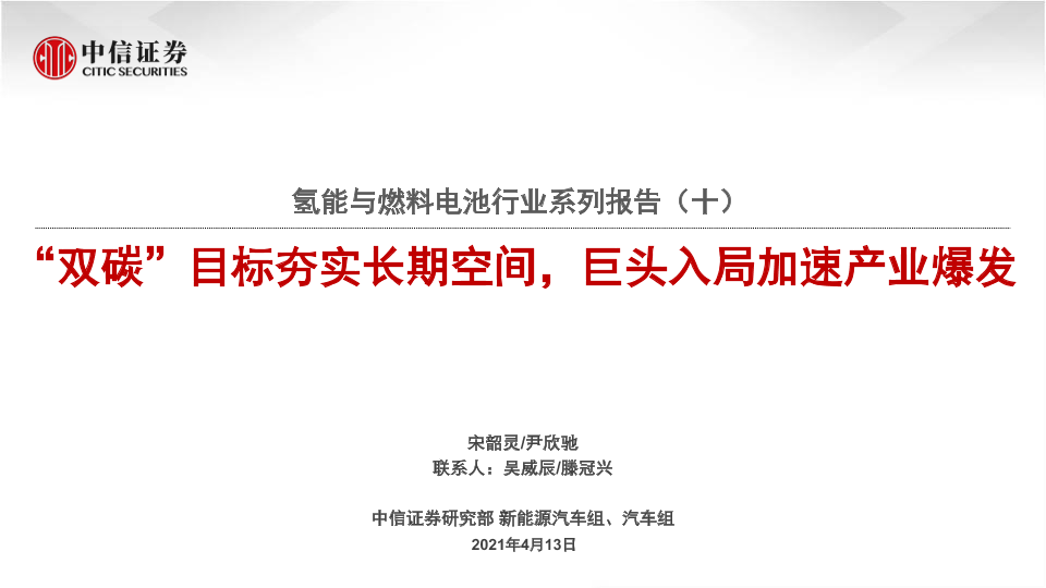 【中信证券】【20210413】氢能与燃料电池行业系列报告(十):“双碳”目标夯实长期空间,巨头入局加速产业爆发-23页