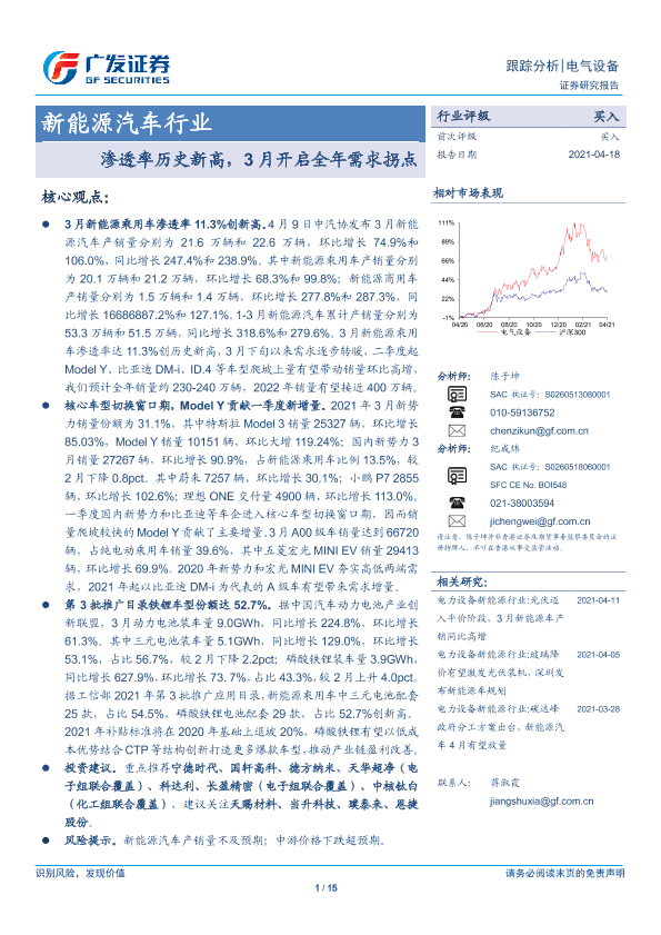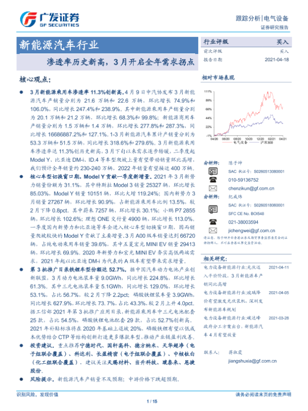 【广发证券】【20210418】新能源汽车行业跟踪分析:渗透率历史新高,3月开启全年需求拐点-15页